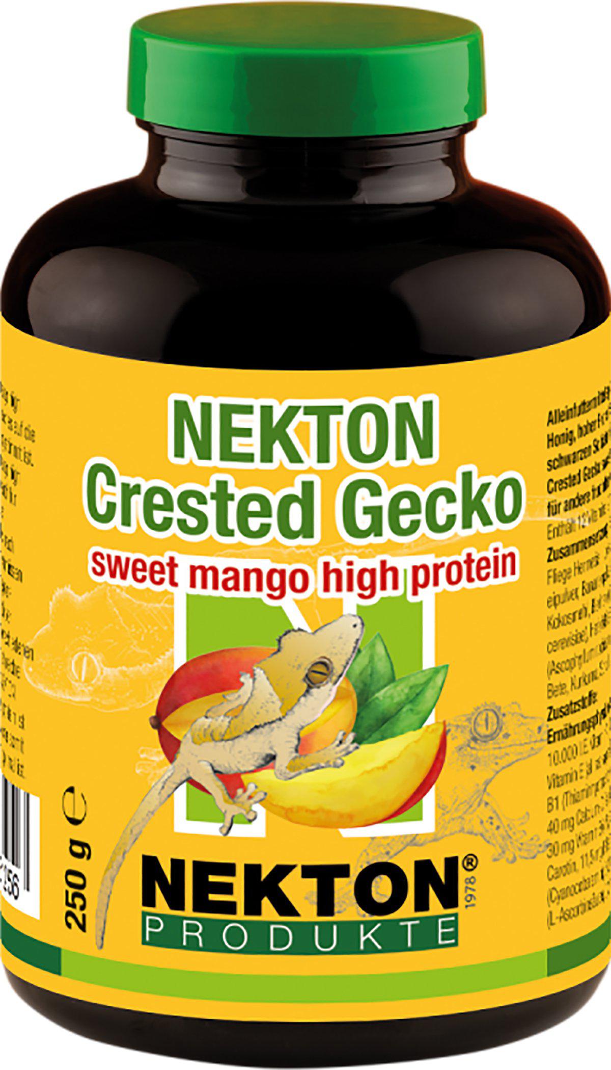 NEKTON Crested Gecko sød mango/protein 100 g er et næringsrigt, balanceret og alsidigt foder til crested geckos og andre frugtædende geckoarter. Produktet er sammensat til at dække geckoens vigtigste ernæringsbehov for kulhydrater, proteiner og mineraler og er udviklet til at være velsmagende og let accepteret med en blid mango- og honningsammensætning.