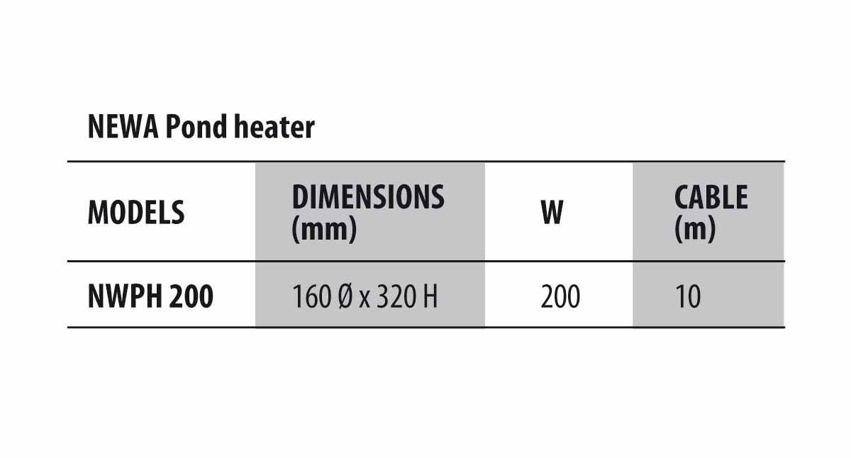 NEWA isfri damvarmer 200W holder et hul i isen i vintersæsonen, så din dam ikke forsegles helt af frost. Den sikrer et stabilt luftskifte mellem vand og atmosfære, hvilket er vigtigt for fisk, vandplanter og den øvrige flora og fauna i og omkring dammen.