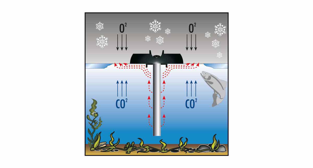 Produktet muliggør optagelse af ilt fra luften og hjælper med at fjerne giftige gasser, der ellers kan ophobe sig under isen. Takket være flyderens form kan fugle hvile på den og bruge de indrettede hulrum til at spise frø eller foder og drikke gennem åbningerne uden at forstyrre driften.