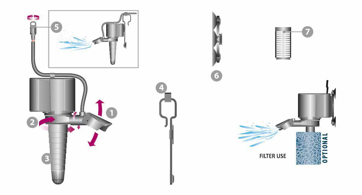 Newa Maxi Power Head 900 er en alsidig nedsænkbar pumpe til akvarier, udviklet til at drive undergrusfilter og skabe målrettet vandbevægelse. Med et fuldt roterbart udløb kan du nemt justere strømretningen, og pumpen fungerer både til cirkulation og iltning i mindre til mellemstore kar.