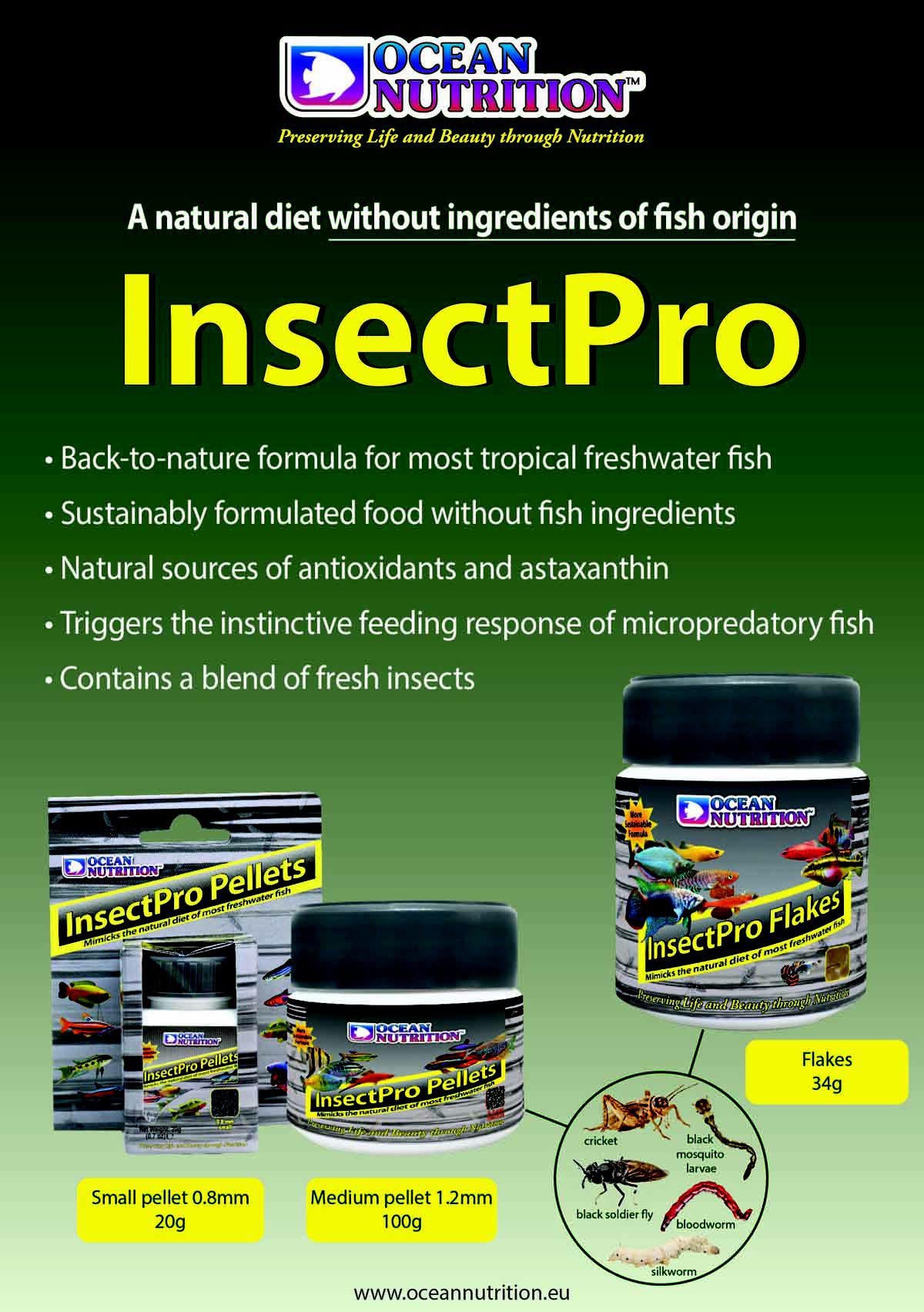 On InsectPro medium pellets 100 g er udviklet med en back-to-nature-tankegang: mange ferskvandsakvariefisk i naturen jagter små insekter, insektslarver og andre krebsdyr frem for at spise fisk. Traditionelle akvariefoder er ofte baseret på fiskemel og marine proteinkilder, mens dette foder i stedet giver protein fra insekter og krebsdyr — en løsning, der næringsmæssigt er mere passende for mange ikke-specialiserede arter.