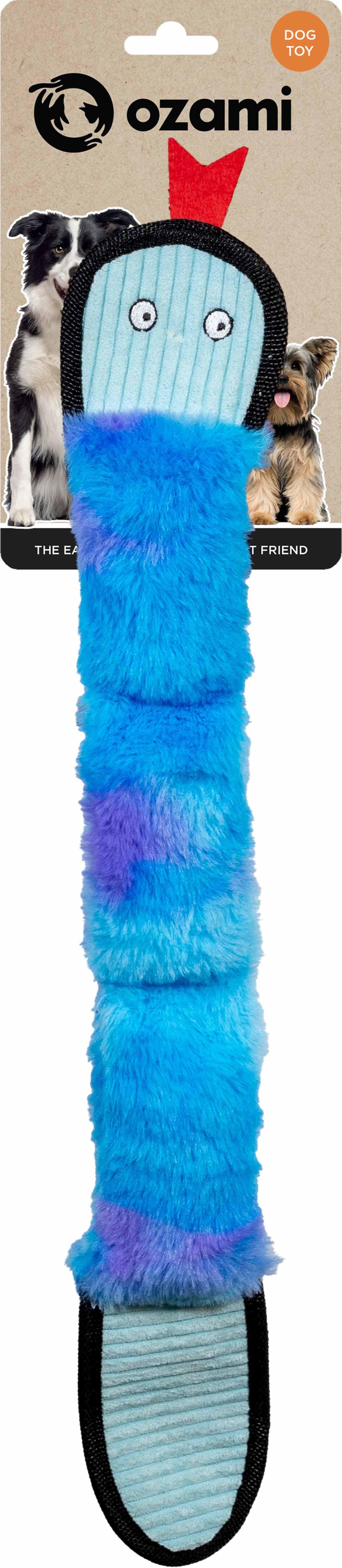 Ozami Fantasy Snakeblue 50 cm er fremstillet af robuste materialer, der tåler aktiv leg, og den aflange form gør den velegnet til trækleg og apportering. Som hundelegetøj er den nem at kaste, gribe og bære — ideel til interaktiv leg mellem ejer og hund.