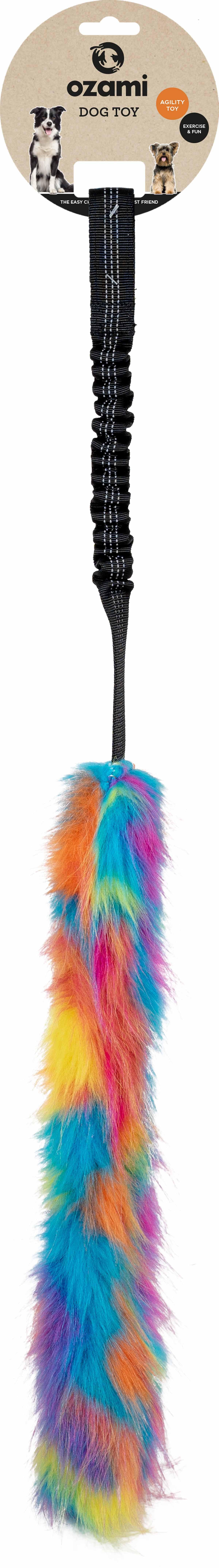 Ozami Play-n-Tug Unicorn 50 cm er et farverigt og underholdende hundelegetøj til trækleg. Med blødt, fluffy plysstof, et robust håndtag og et indbygget elastisk bånd giver legetøjet en blødere modstand, der kan mindske belastningen ved trækleg. Med en længde på 50 cm er det designet til aktiv leg mellem hund og ejer.