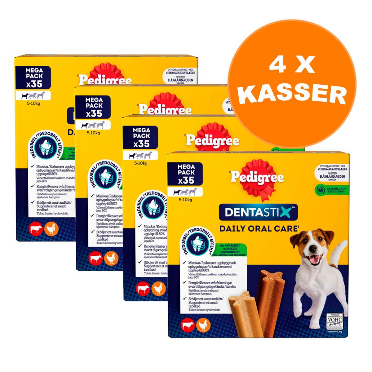 DentaStix® er udviklet til små hunde og fungerer som en velsmagende tyggegodbid, der både motiverer hunden og understøtter tandplejen. Brug produktet som en del af en daglig rutine og følg anbefalingerne på pakken for portionering. Det er en praktisk løsning for travle ejere, der ønsker at forbedre hundens mundhygiejne uden at erstatte professionel tandpleje eller daglig tandbørstning.
