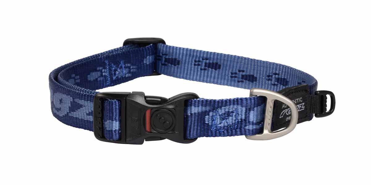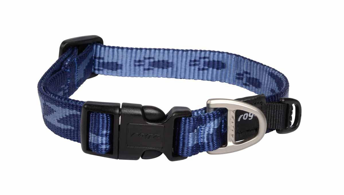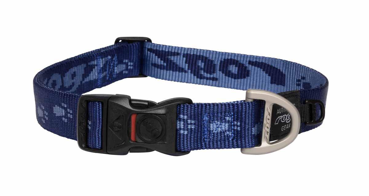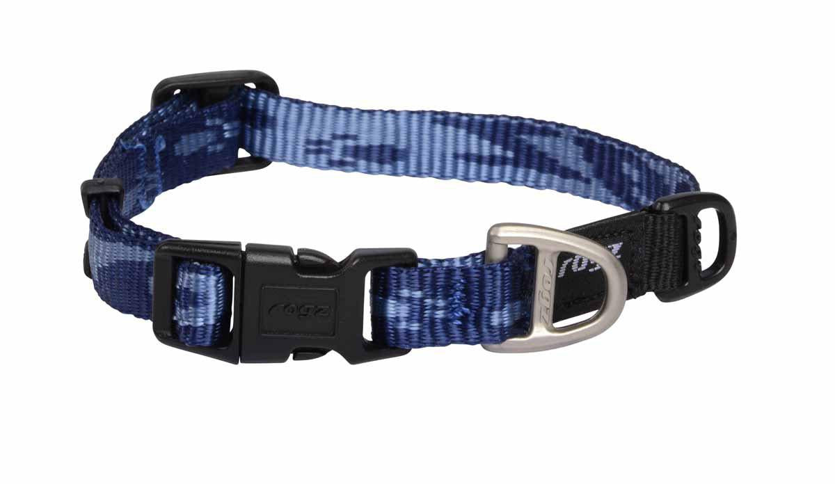 ROGZ Alpinist halsbånd blå 26-40 cm er et justerbart hundehalsbånd til hunde med halsmål 26–40 cm. Halsbåndet er lavet af blødt materiale, der ligger godt i hånden og er skånsomt mod pels og hud, hvilket gør det velegnet til både daglige gåture og aktiv leg.