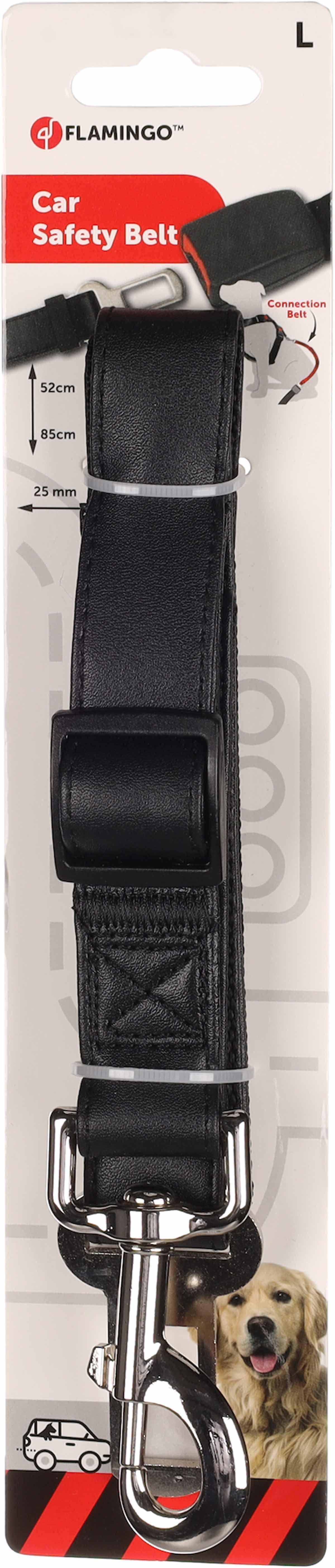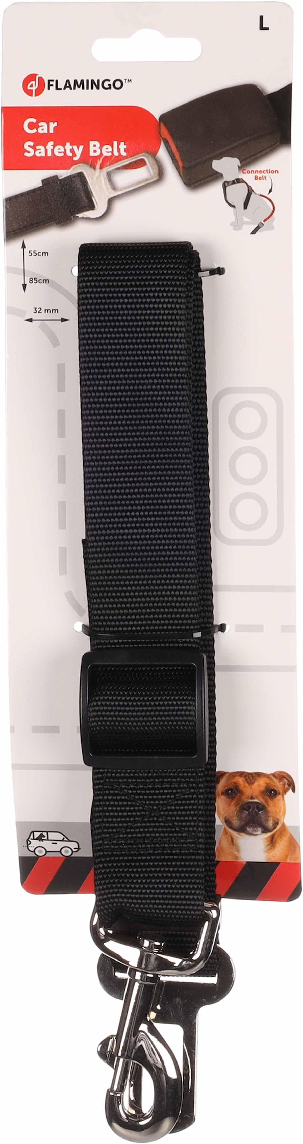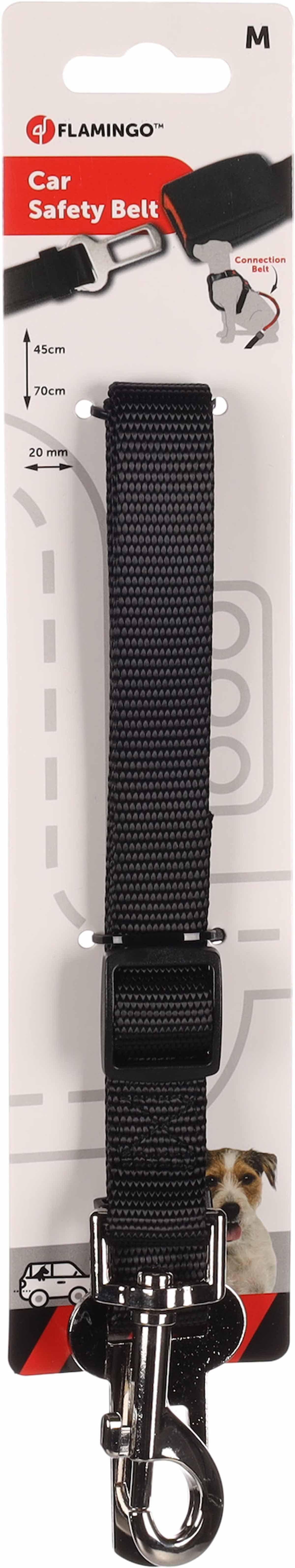 Den sorte connector er fremstillet i holdbart polyester og giver ekstra sikkerhed, når din hund skal med på køretur. Med en robust karabinhage og en justerbar rem holder adapteren hunden fast i bilen og passer til standard sikkerhedsbælter med 32 mm bredde.