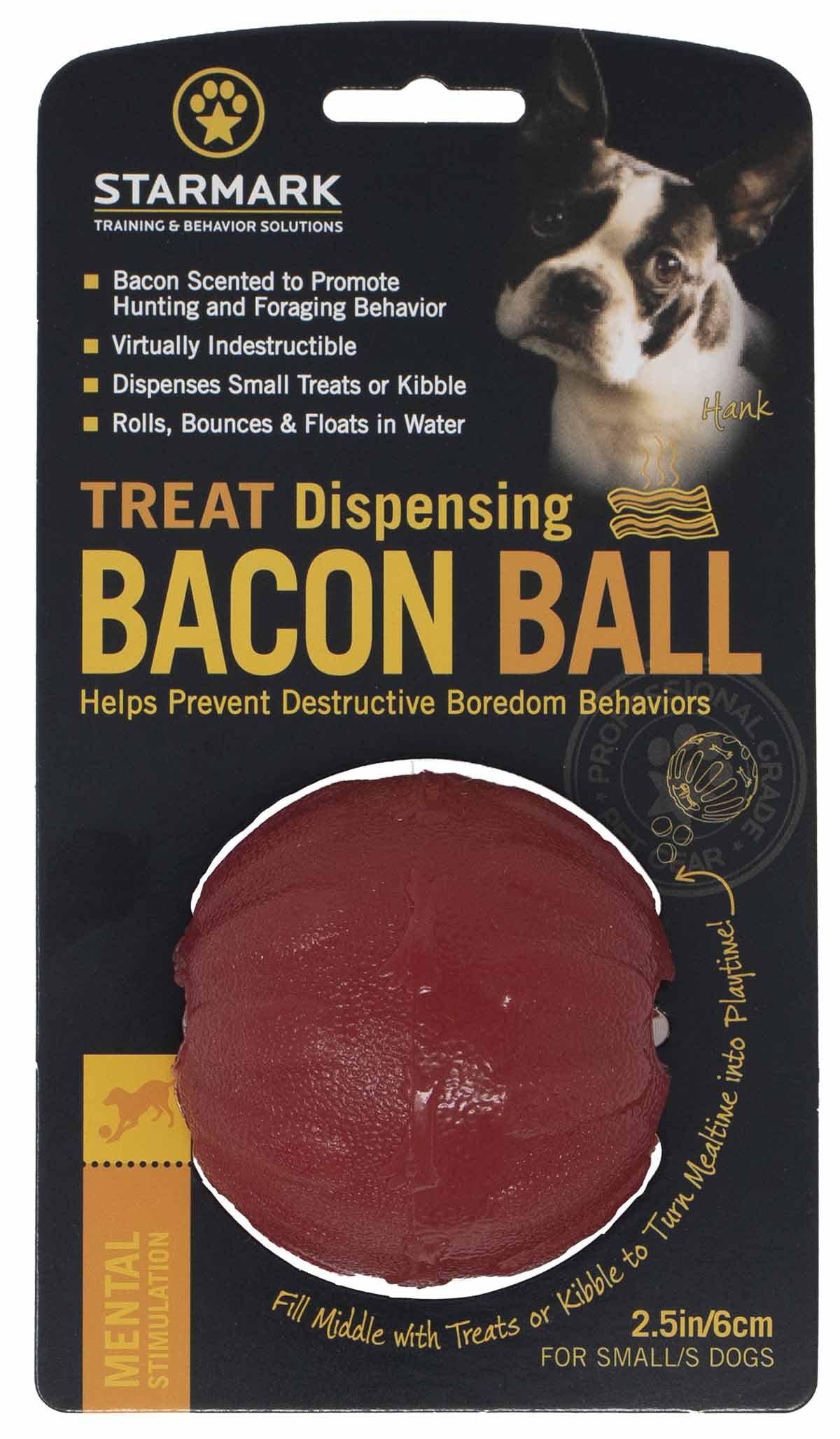 Starmark Bacon Ball M 8cm er desuden opvaskemaskine-sikker for nem rengøring. Som hundelegetøj og godbid-dispenser fungerer den særligt godt til aktivering, træning og længerevarende beskæftigelse — et enkelt og effektivt supplement til din hunds daglige stimulering.