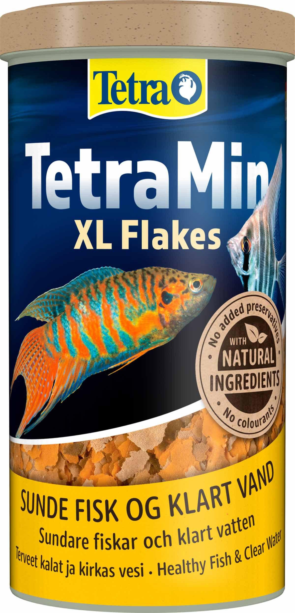 TetraMin XL er et biologisk balanceret flagefoder med ekstra store flager, der udgør en komplet kost til daglig fodring af større prydfisk. Flagerne flyder længe og synker først langsomt, hvilket gør dem ideelle i blandede akvarier. Den omhyggeligt sammensatte blanding af over 40 råvarer indeholder førsteklasses og funktionelle næringsstoffer samt vigtige vitaminer, mineraler og sporstoffer. Foderet indeholder desuden prebiotika, der understøtter fiskens fysiologi og foderudnyttelse, hvilket fremmer sund vækst, øget vitalitet og klare farver samtidig med, at akvarievandet holdes klart.