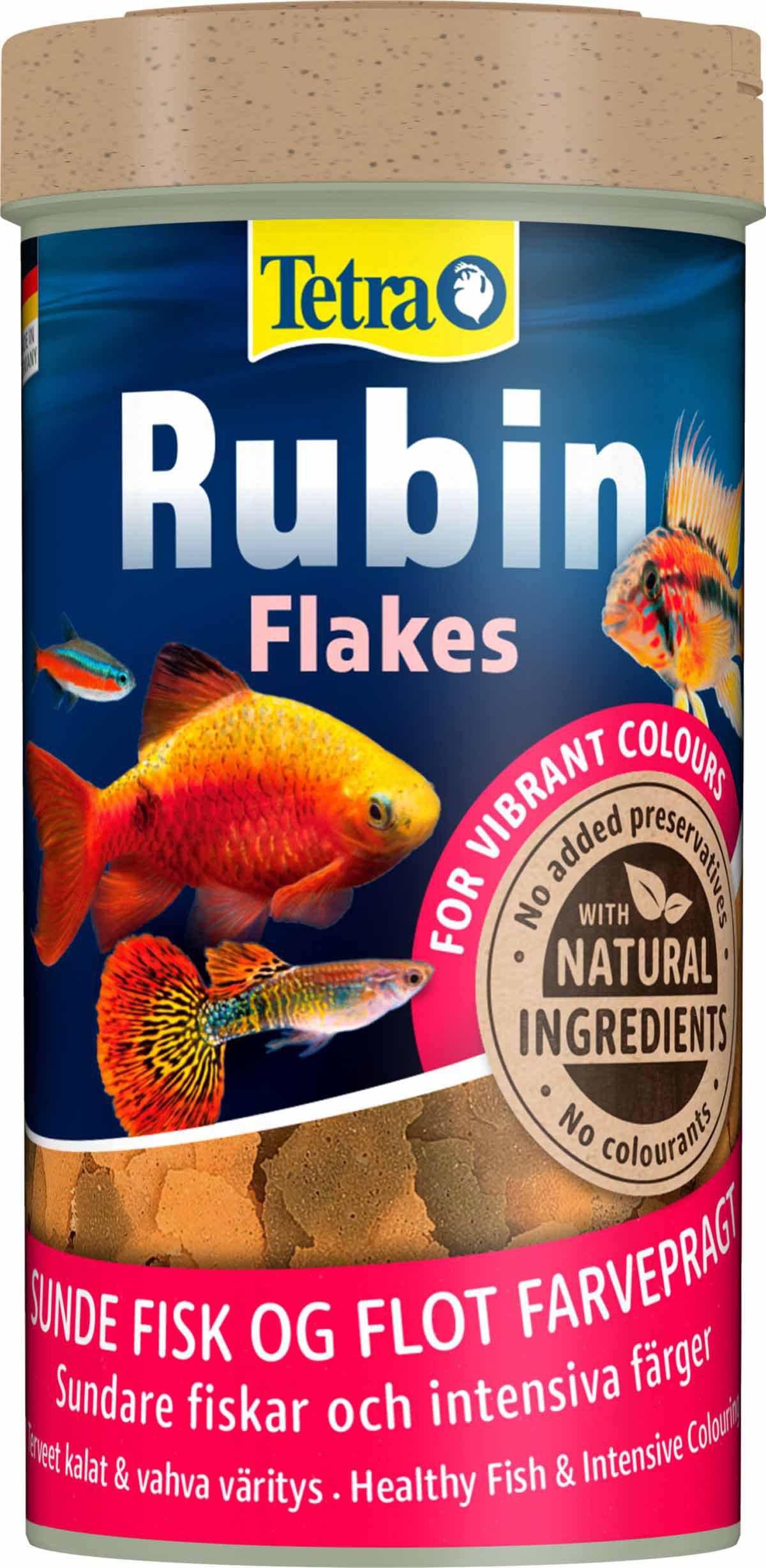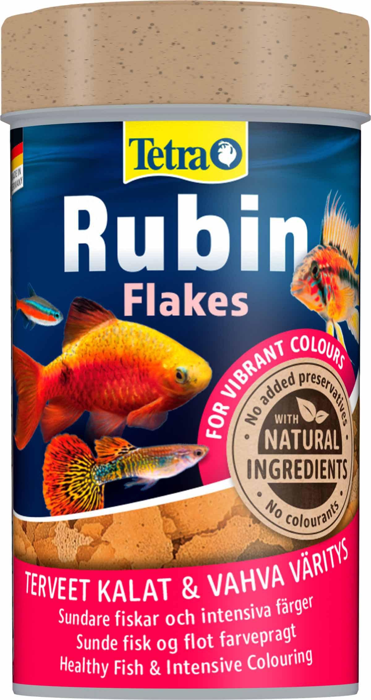 Tetra Rubin 250 ml er et biologisk afbalanceret flagefoder, udviklet som en fuldgyldig daglig kost til alle modne akvarieprydfisk. Foderet dækker de basale ernæringsbehov ved kontinuerlig fodring og fungerer som hovedfoder i almindelige akvarier.