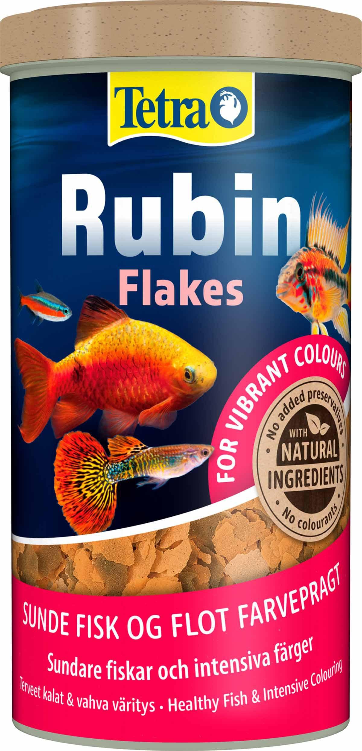 Særlige farveforstærkende ingredienser fremhæver røde, orange og gule nuancer, og effekten kan ses efter blot to ugers regelmæssig fodring. Tetra Rubin indeholder desuden prebiotika, der bidrager til forbedret foderudnyttelse og understøtter kroppens naturlige funktioner — med positiv effekt på vækst og klart vand.