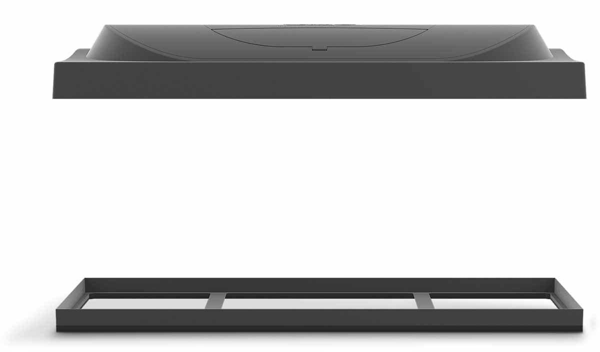 Akvariet er lavet med robuste ruder og et solidt låg med praktisk matningsluge, så du kan fodre uden at fjerne hele låget. Den integrerede 10 W LED-belysning har dag-/natfunktion og giver klart, naturligt lys med lavt energiforbrug. Lågets konstruktion hjælper desuden med at forhindre, at nysgerrige krebsdyr undslipper.