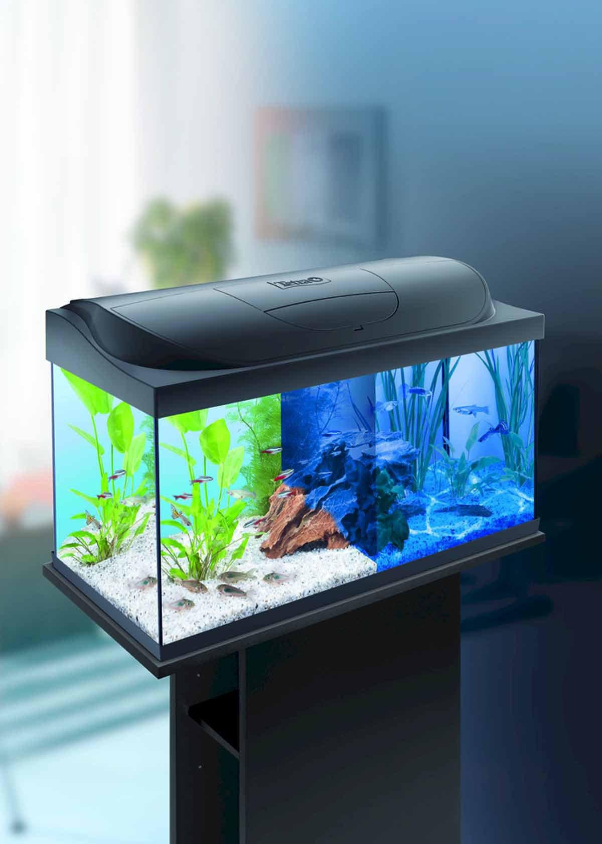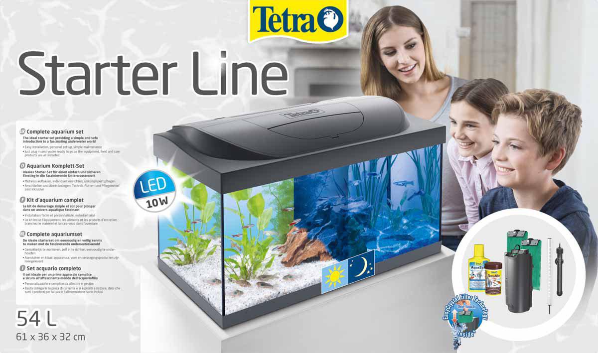 Tetra Starter Line Led akvariesæt 54 L, sort er et komplet sæt designet til begyndere, der ønsker et enkelt og pålideligt akvarium klar til de første fisk eller planter. Serien fås i flere størrelser (30, 54, 80 og 105 liter), og 54 L-udgaven er et ideelt mellemstørrelsesakvarium til små stimer af guppyer, platies, levende planter eller krebsdyr.