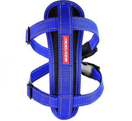 Ezydog neoprenblå sele S 6-10 kg gå- og bilsele er designet med fokus på enkelhed, lav vægt, komfort og sikkerhed. Den justerbare, robuste og ergonomiske konstruktion fordeler belastningen over brystet i stedet for halsen, hvilket gør det lettere at kontrollere og træne hunden og samtidig øger komforten i forhold til et traditionelt halsbånd.
